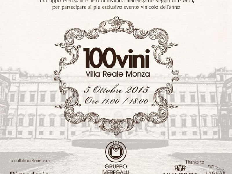 Lunedì 5 ottobre dalle ore 11:00 alle ore 18:00 presso l'elegante Villa Reale di Monza si terrà l'evento vinicolo dell'anno: 100 vini e ci saremo anche noi!