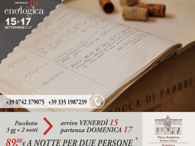 Per il weekend di Montefalco Enologiuca 2017 dal 15 al 17 settembre, Vi aspettiamo per un soggiorno nella terra del Sagrantino di 2 notti in trattamento b&b per due persone a € 89,00 a notte.